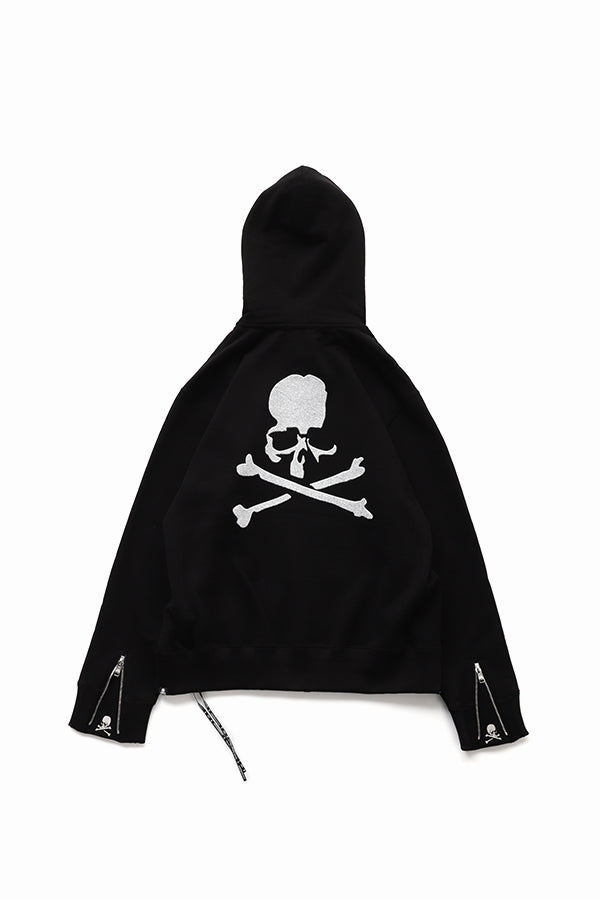 Regular fit zip-up hoodie made by original french terry fabric blends luxurious Suvin Gold and Giza cotton with advanced odor-neutralizing fibers that effectively combat unpleasant smells like ammonia. Embroidery-ish printed LOGO on the hood, SKULL on the back.