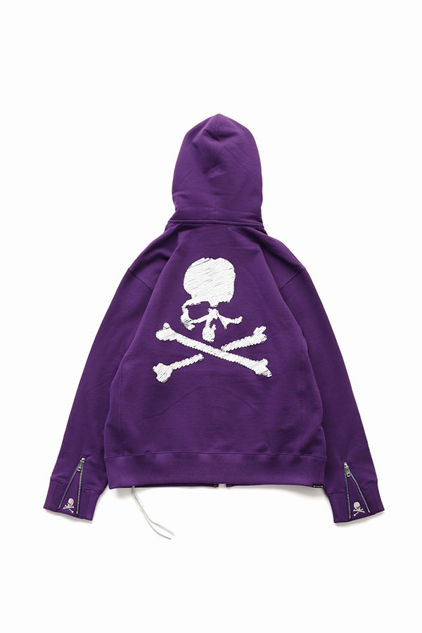 Regular fit zip-up hoodie made by original french terry fabric blends luxurious Suvin Gold and Giza cotton with advanced odor-neutralizing fibers that effectively combat unpleasant smells like ammonia. Puff print LOGO on the hood, SKULL on the back.