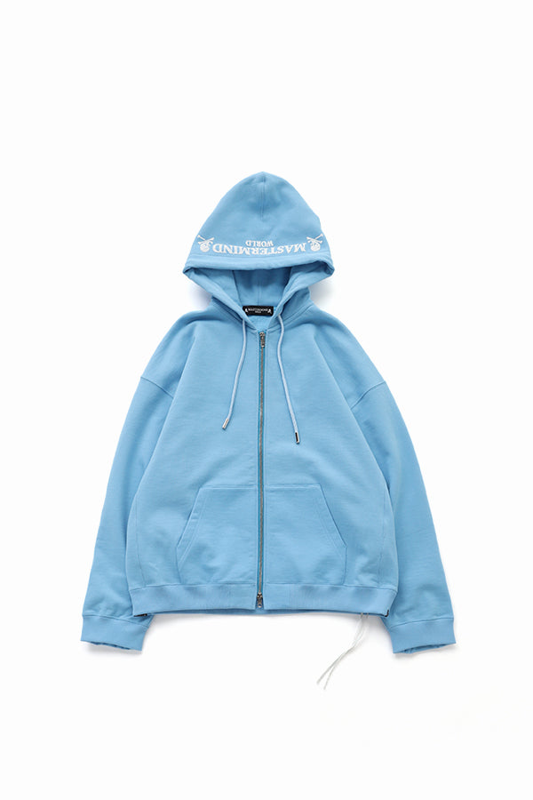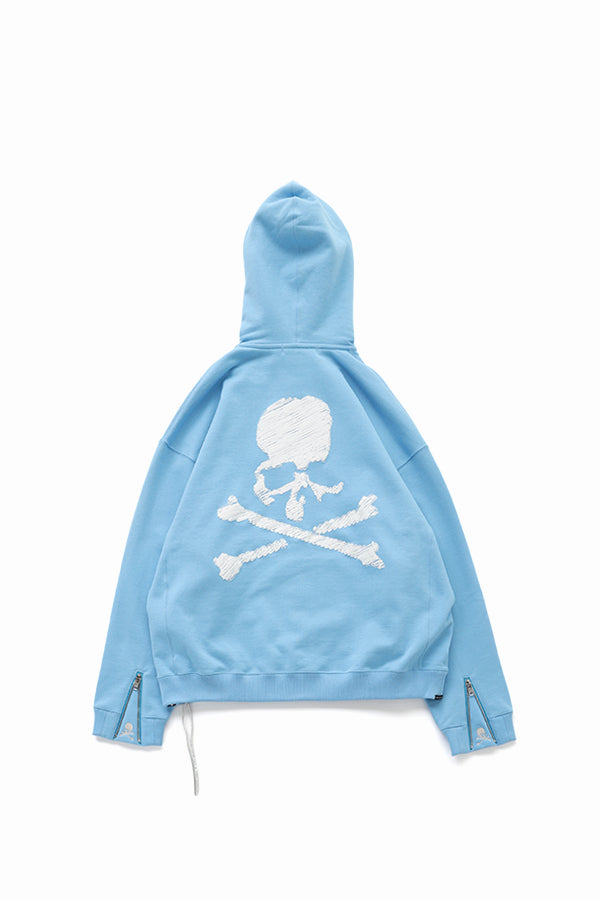 Boxy fit zip-up hoodie made by original french terry fabric blends luxurious Suvin Gold and Giza cotton with advanced odor-neutralizing fibers that effectively combat unpleasant smells like ammonia. Puff print LOGO on the hood, SKULL on the back.