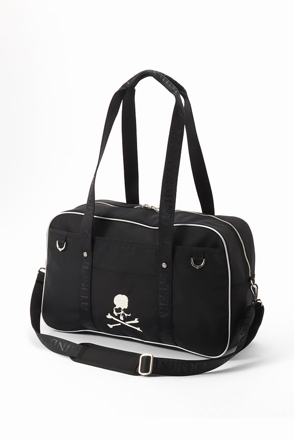 Nylon bag inspired by japanese high school bags, skull silver embroidery and featuring branded components.