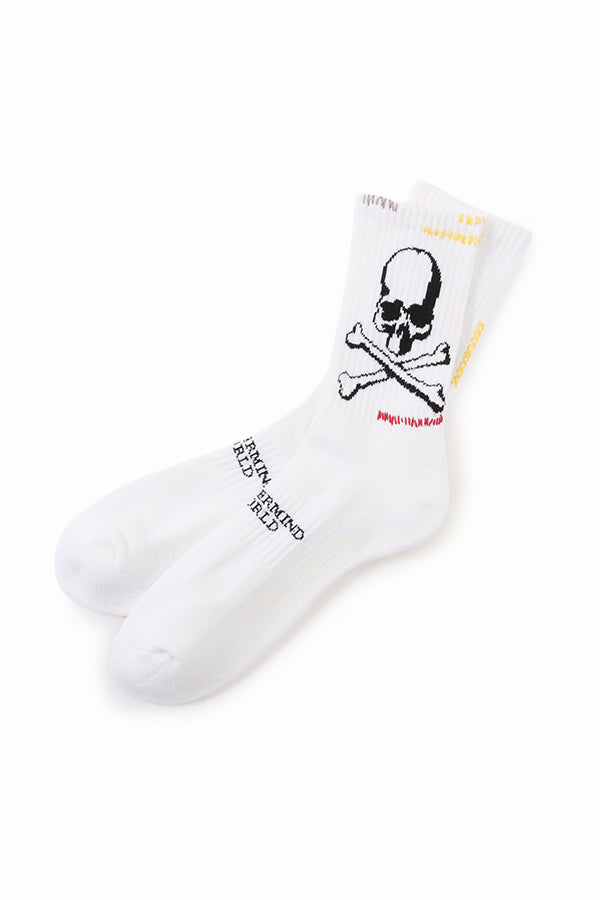 Multicolor Stiched detail crew socks with jacquard SKULL on the side.