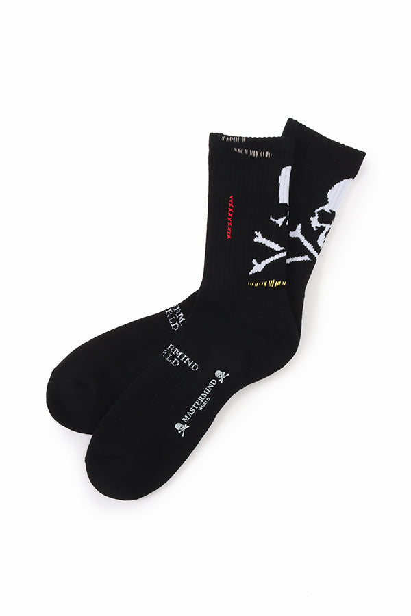 Multicolor Stiched detail crew socks with jacquard SKULL on the back.