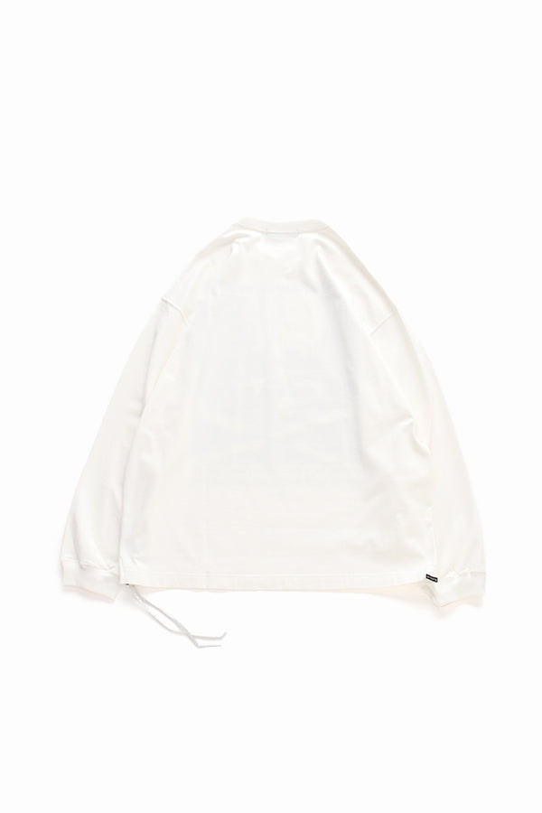 Oversized Fit Long Sleeve T-Shirt made by our own-made "Suvin Gold × Giza hybrid cotton" alongside deodorant yarn which removes only bad odors that human feels uncomfortable. (ex. ammonia, acetic acid and hydrogen sulfide) Using special apparatus which polish the fabric like a diamond for the softer feels with tension. Original Graphic Printed on the Front.