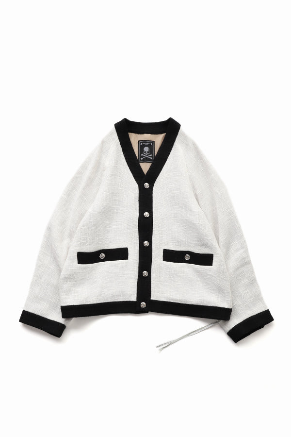 TWEED CARDIGAN made by tweed fabric that is woven over twice the normal duration to create a soft, airy feel with an elegant finish. Embroidery SKULL and LOGO on the back.