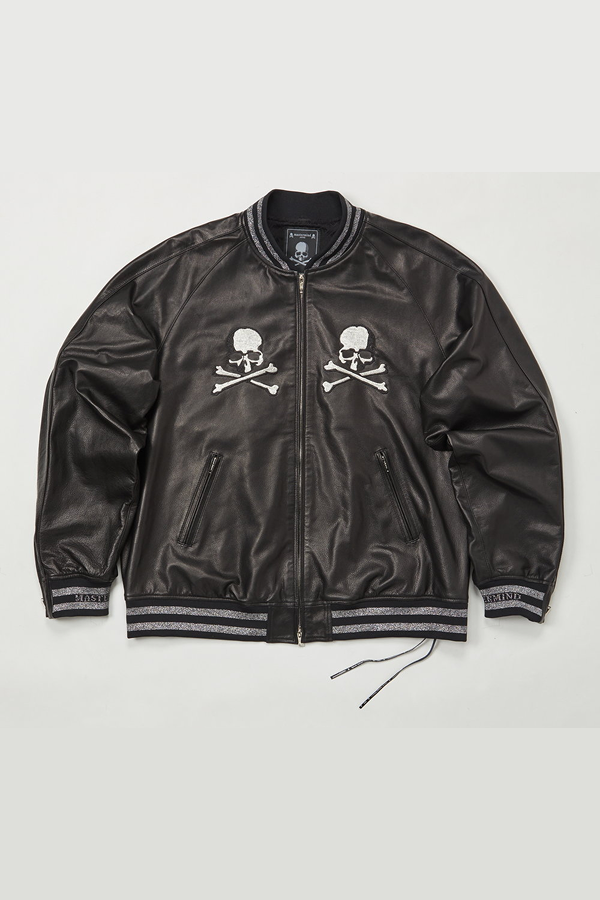 LEATHER JACKET made by soft very thin calf leather. Hand-embroidered SKULL on the front chest, SKULL and LOGO on the back.