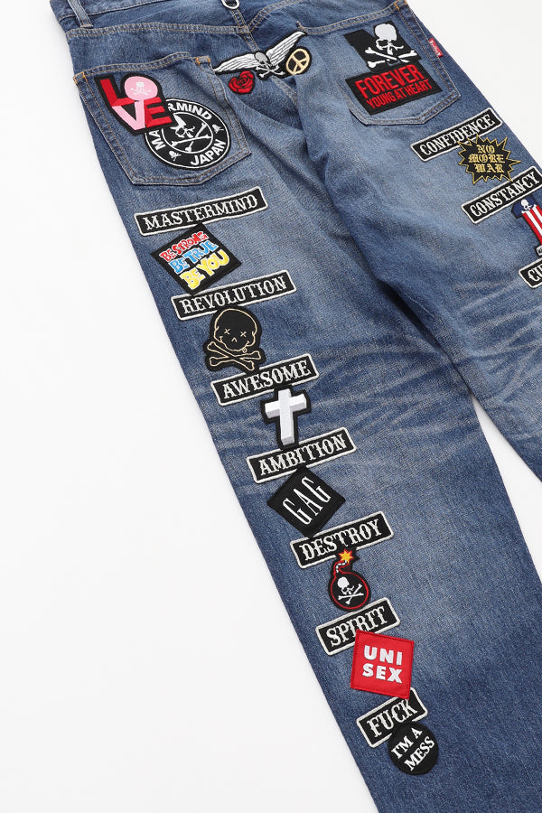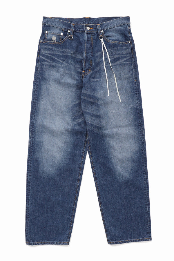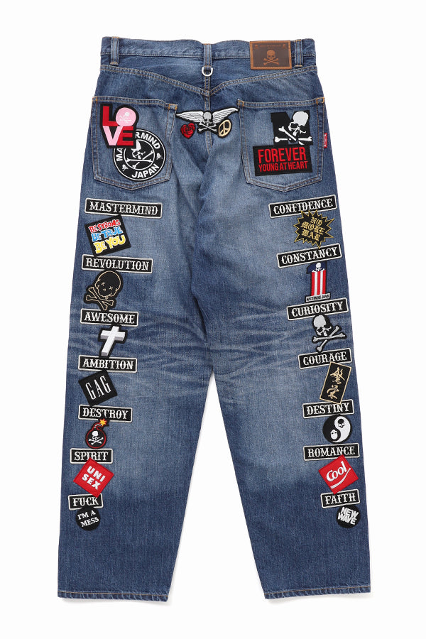 STRAIGHT DENIM PANTS made by 12 oz original denim. The back panel is generously adorned with original embroidery patch. M: 34in L: 36in *Sizing may slightly vary.