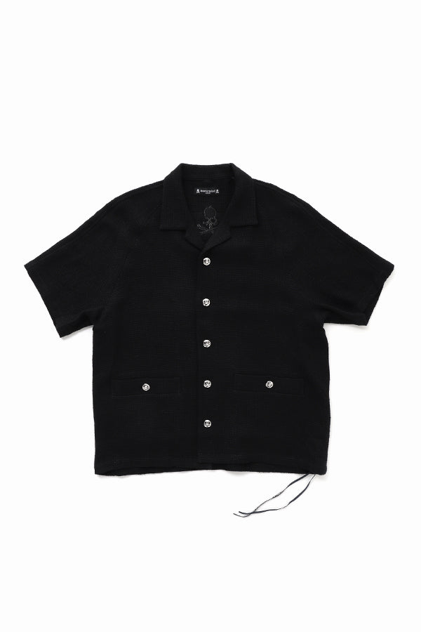 SS TWEED SHIRT made by tweed fabric that is woven over twice the normal duration to create a soft, airy feel with an elegant finish. Embroidery SKULL and LOGO on the back.