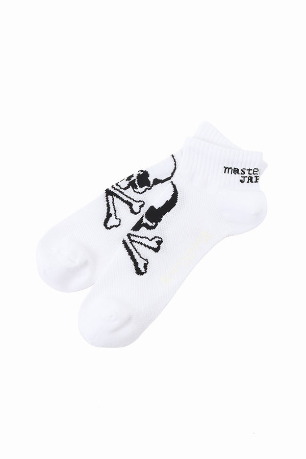 Jacquard-knit sneaker socks made by gas mercerized yarn, with a mesh instep for breathability.