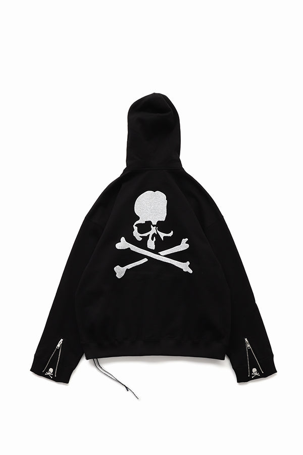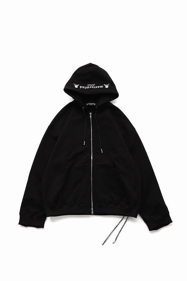 Boxy fit zip-up hoodie made by original french terry fabric blends luxurious Suvin Gold and Giza cotton with advanced odor-neutralizing fibers that effectively combat unpleasant smells like ammonia. Embroidery-ish printed LOGO on the hood, SKULL on the back.