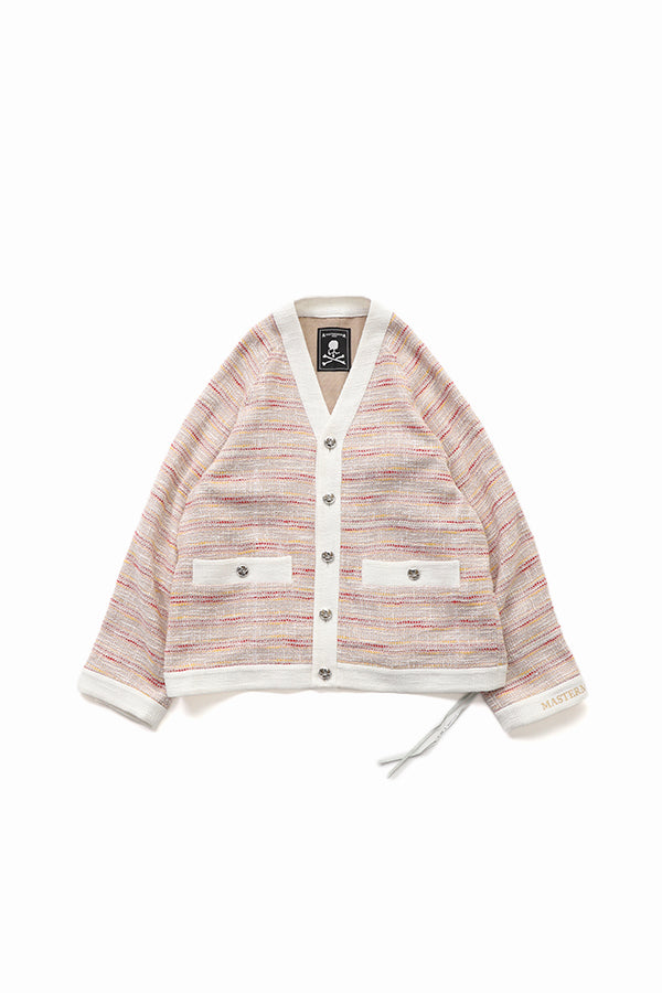 TWEED CARDIGAN made by tweed fabric that is woven over twice the normal duration to create a soft, airy feel with an elegant finish. Embroidery SKULL on the back.