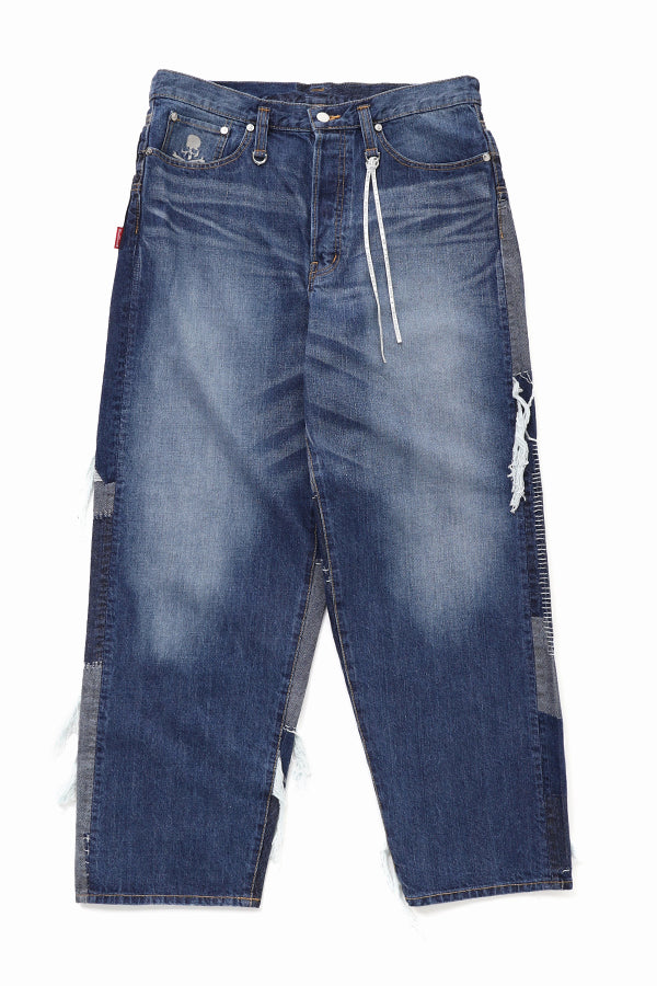 WIDE DENIM PANTS made by 12 oz original patchwork jacquard denim. Raw edge details on the back. S: 32in M: 34in *Sizing may slightly vary.