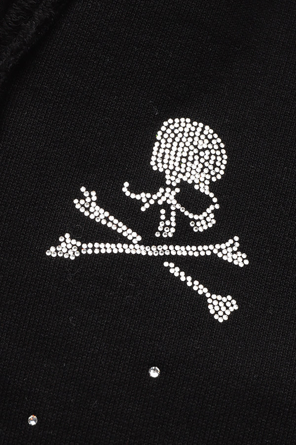 Regular fit jogger pants with cut-off details made by original french terry fabric blends luxurious Suvin Gold and Giza cotton with advanced odor-neutralizing fibers that effectively combat unpleasant smells like ammonia. Swarovski🄬 Crystals SKULL on the right front, LOGO on the left front, and randomely scattered.